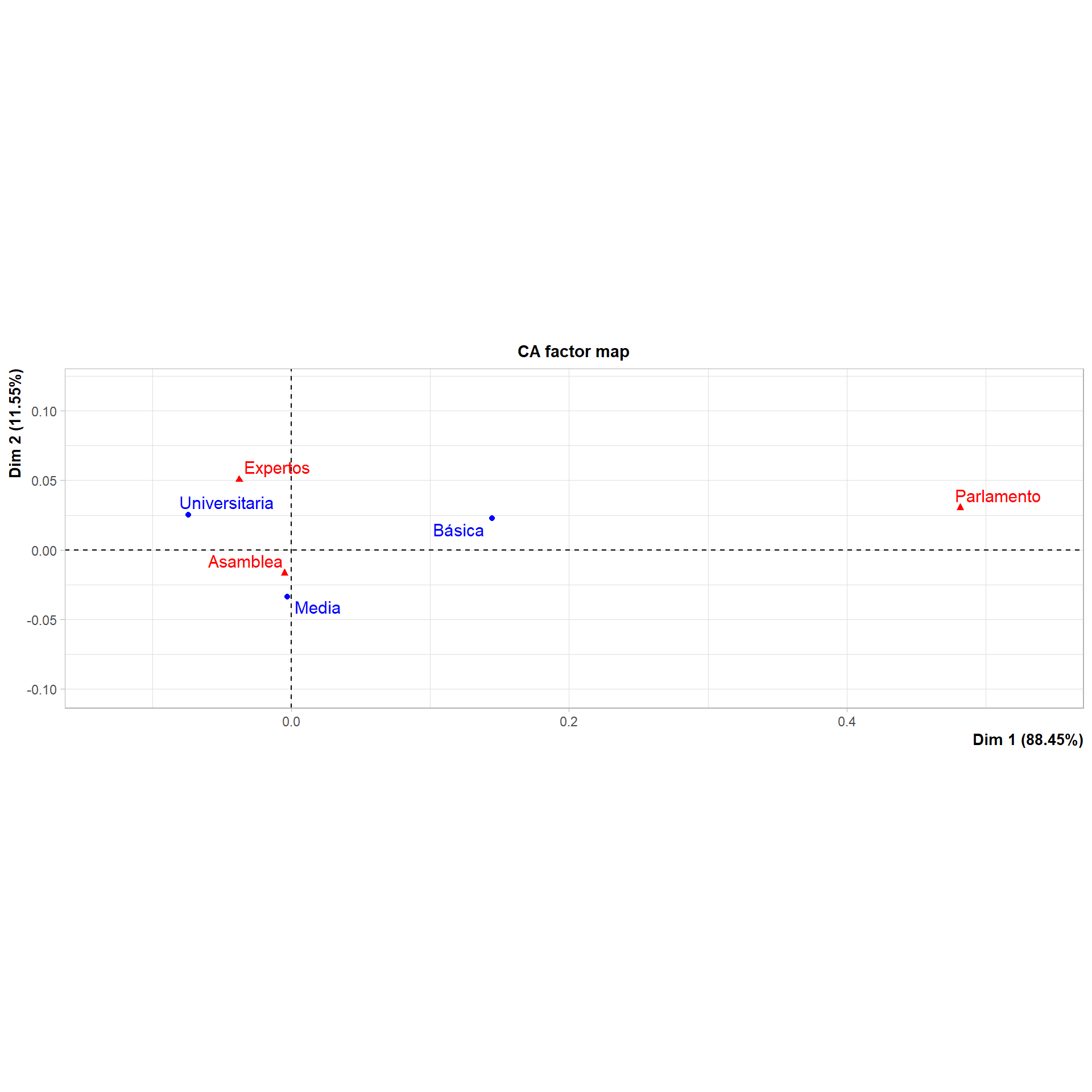 #Representación simultáneaplot.CA(ACS)