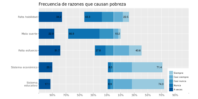 | Razones pobreza falta de habilidad | Razones pobreza mala suerte | Razones pobreza falta de esfuerzo | Razones pobreza sistema económico | Razones pobreza sistema educativo | |